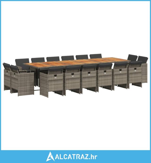17-dijelni vrtni blagovaonski set s jastucima poliratan sivi - NOVO