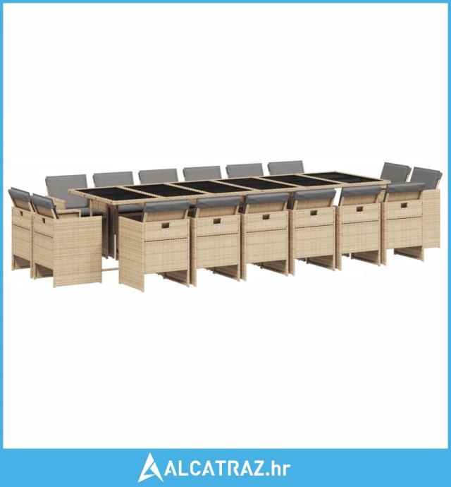 17-dijelni vrtni blagovaonski set od poliratana s jastucima bež - NOVO