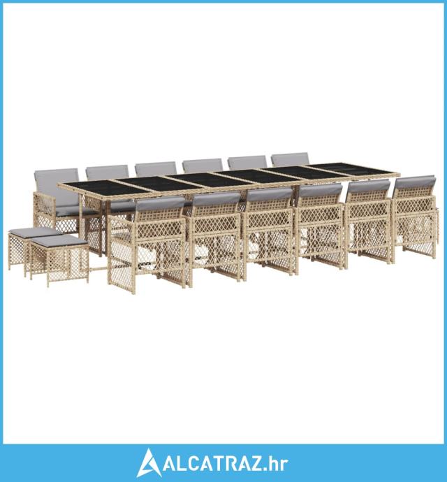 17-dijelni vrtni blagovaonski set od poliratana s jastucima bež - NOVO