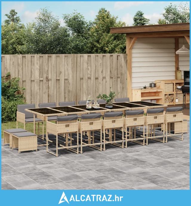 17-dijelni vrtni blagovaonski set od poliratana s jastucima bež - NOVO