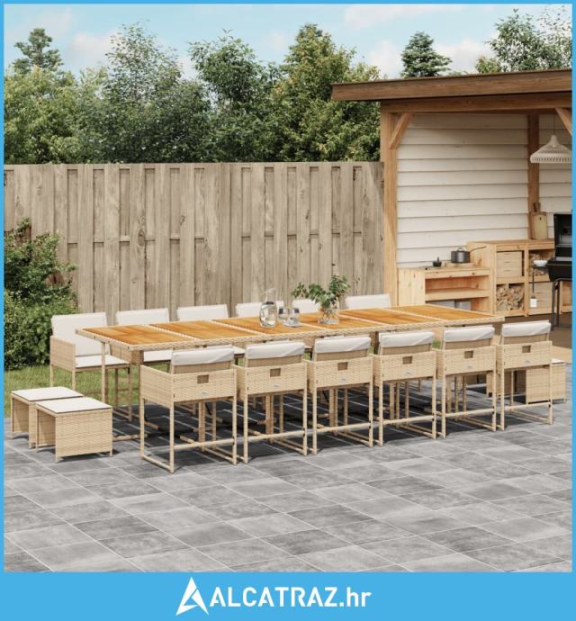 17-dijelni vrtni blagovaonski set od poliratana s jastucima bež - NOVO