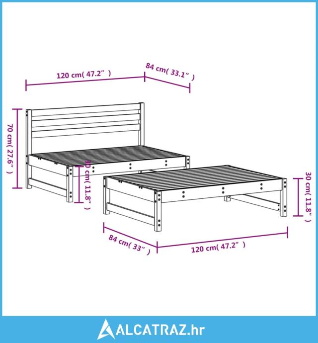 - Dimenzije stolića za kavu / vrtnog taburea: 120 x 84 x 30 cm (D x Š x V)