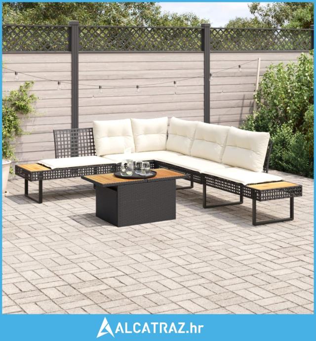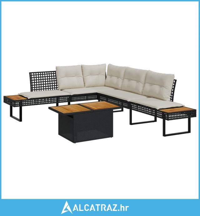 2-dijelna vrtna garnitura s jastucima crna od poliratana i drva - NOVO