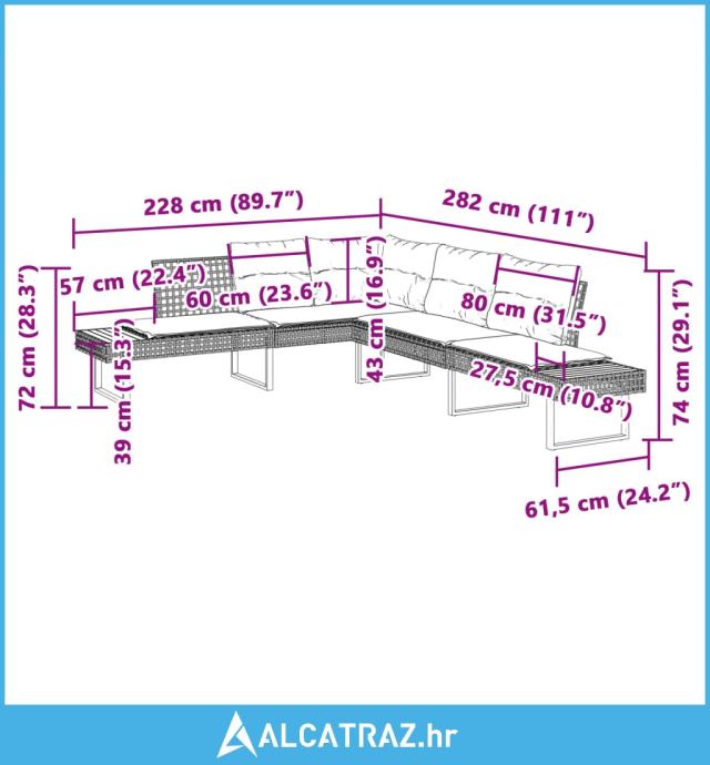 - Ukupne dimenzije: 282 x 228 x 74 cm (Š x D x V)