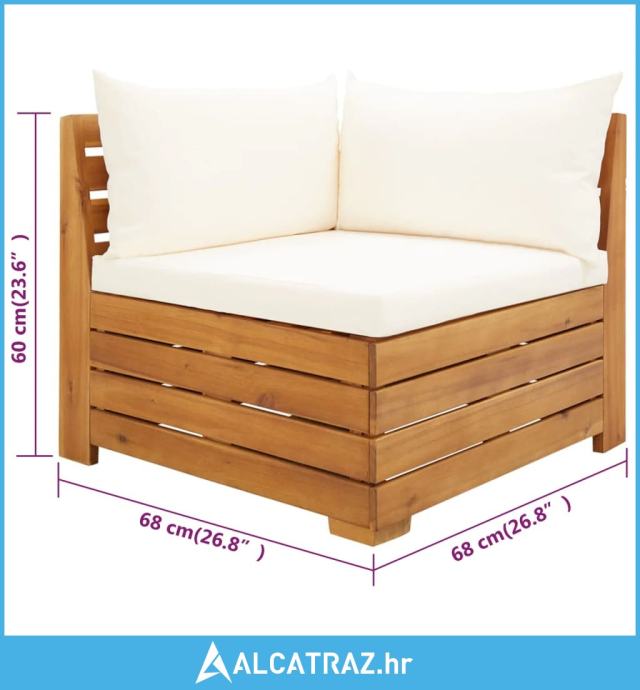 Izrađen od masivnog bagremovog drva, ovaj set vrtnog namještaja otporan je na vremenske uvjete i vrlo izdržljiv. U kombinaciji s debelo podstavljenim jastucima, ovaj set sofa pruža najveću udobnost. Možete ga kombinirati s drugim modularnim segmentima kako biste stvorili vlastiti razmještaj vrtne garniture!
