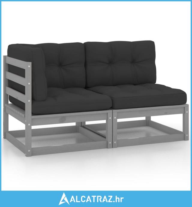 2-dijelna vrtna garnitura s jastucima siva od masivne borovine - NOVO