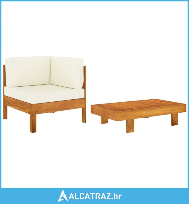 2-dijelna vrtna garnitura s krem bijelim jastucima drvo bagrema - NOVO