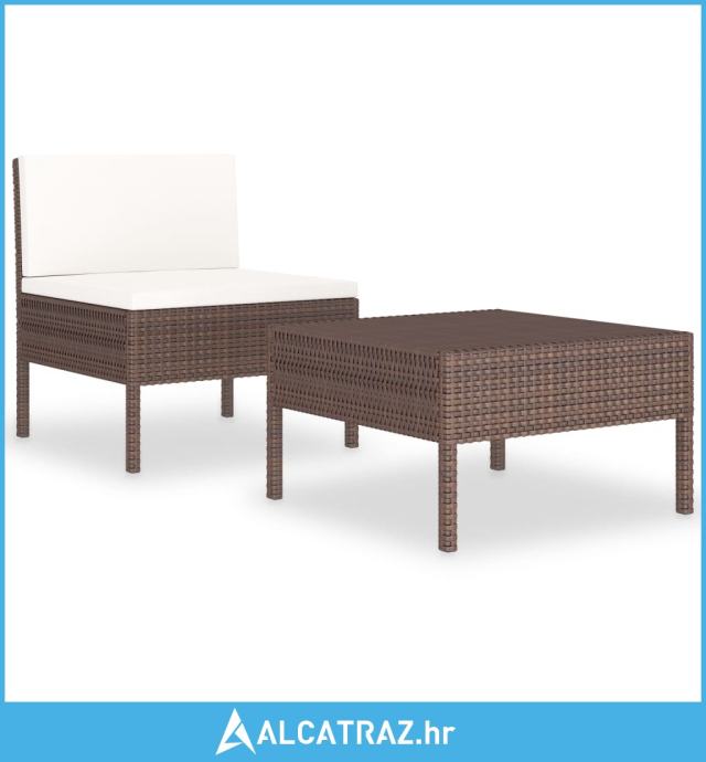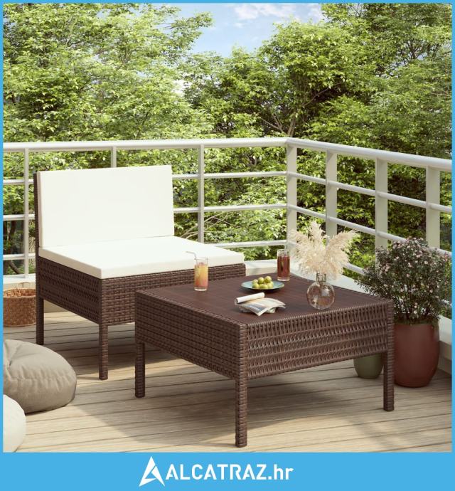 2-dijelna vrtna garnitura od poliratana s jastucima smeđa - NOVO