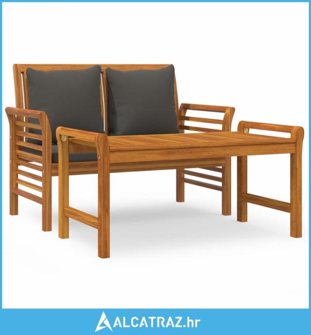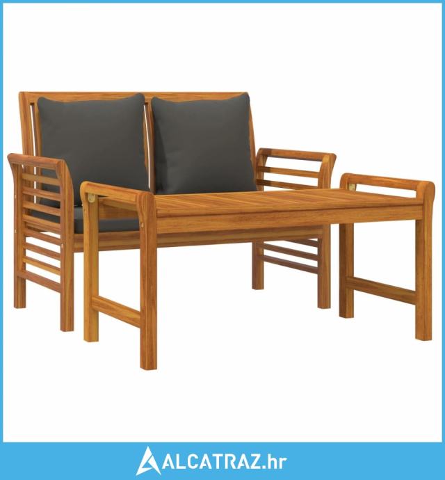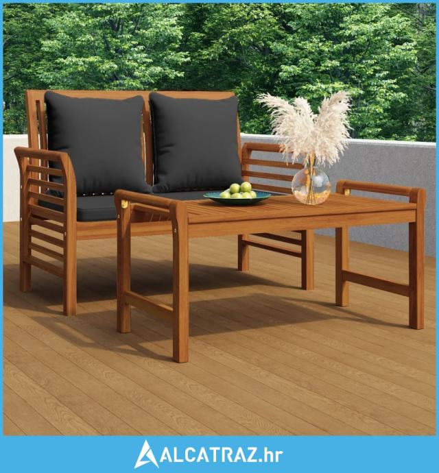 2-dijelna vrtna garnitura s tamnosivim jastucima masivno drvo - NOVO