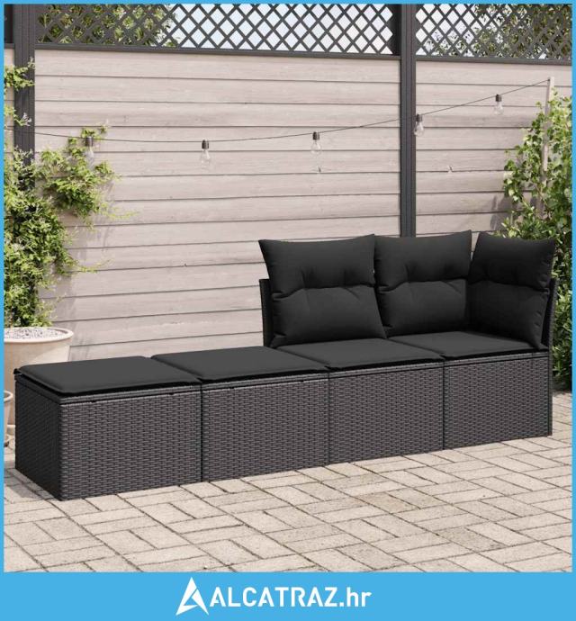 2-dijelni set vrtnih sofa s jastucima crni od poliratana bagrem - NOVO