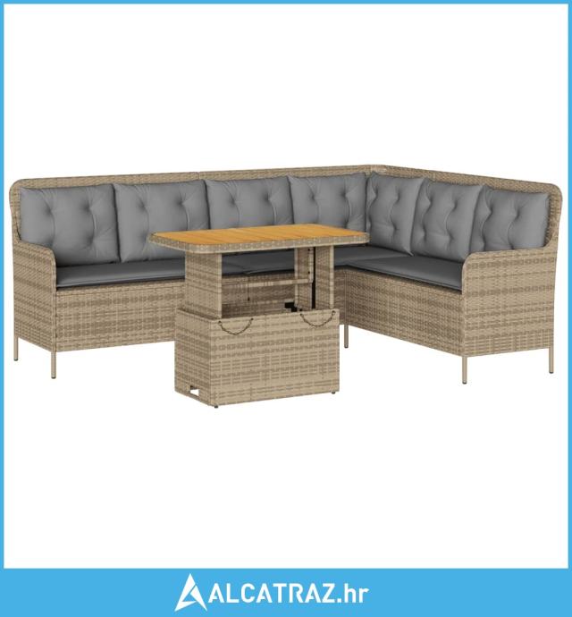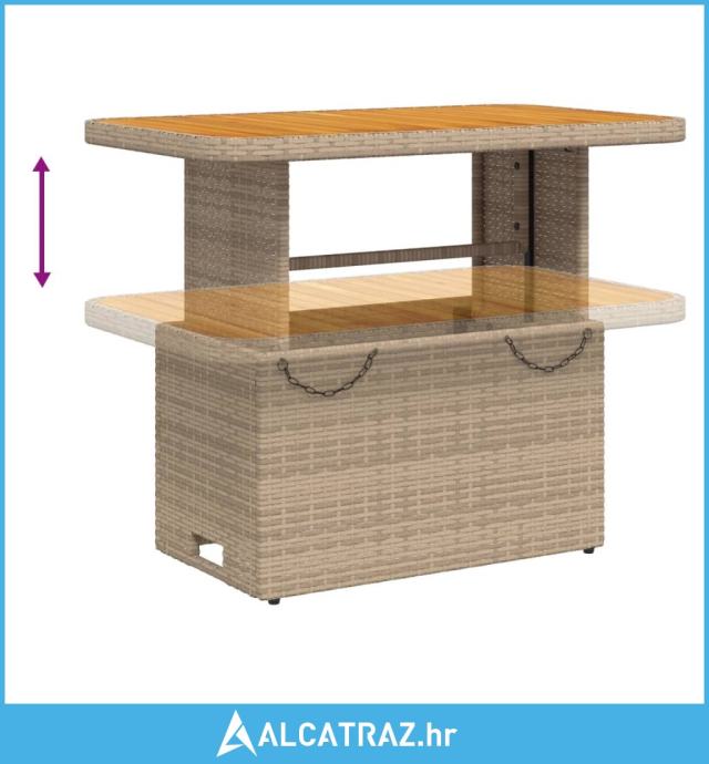 - Podesiva stolna ploča: Stolna ploča može se podići kako bi stol bio viši, što pretvara ovaj vanjski stol iz stolića za kavu u blagovaonski stol. Savršen je za goste ili obroke vani.