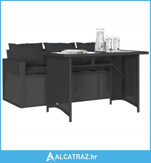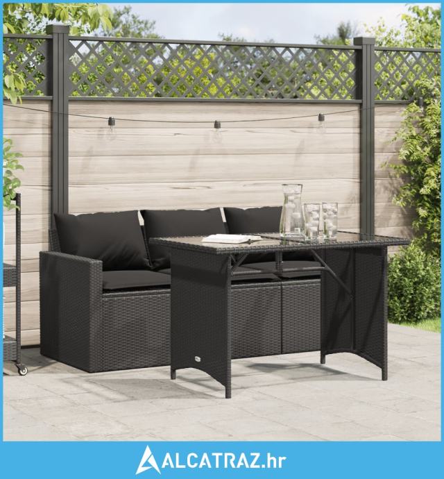 2-dijelni vrtni blagovaonski set s jastucima od poliratana crni - NOVO