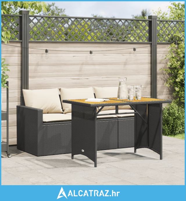 2-dijelni vrtni blagovaonski set s jastucima od poliratana crni - NOVO