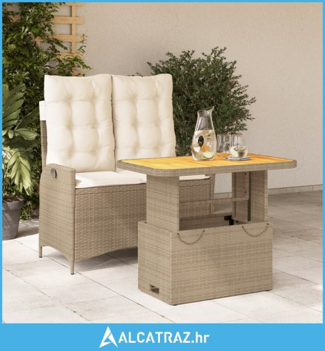 2-dijelni vrtni blagovaonski set od poliratana s jastucima bež - NOVO