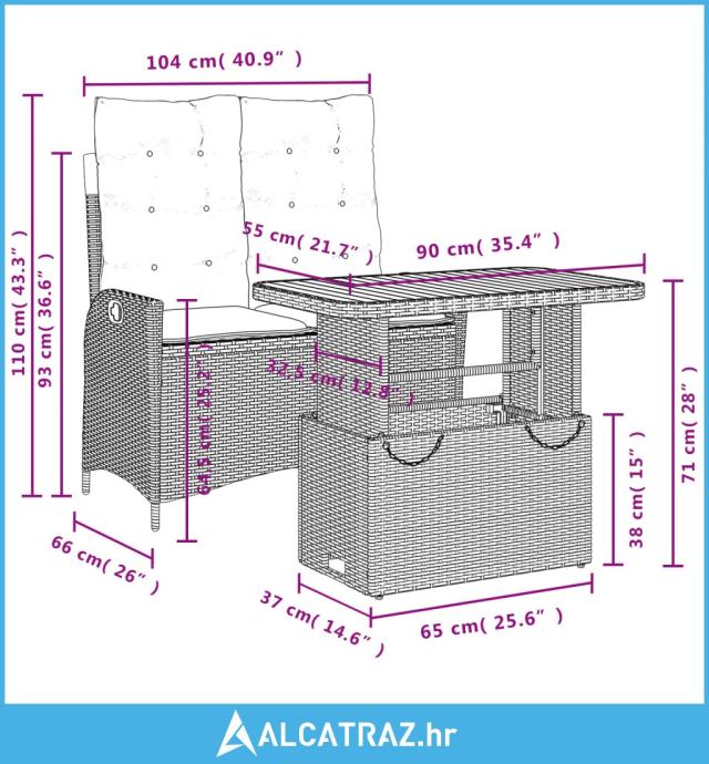 - Dimenzije kod sjedenja: 104 x 59 x 93 cm (Š x D x V)