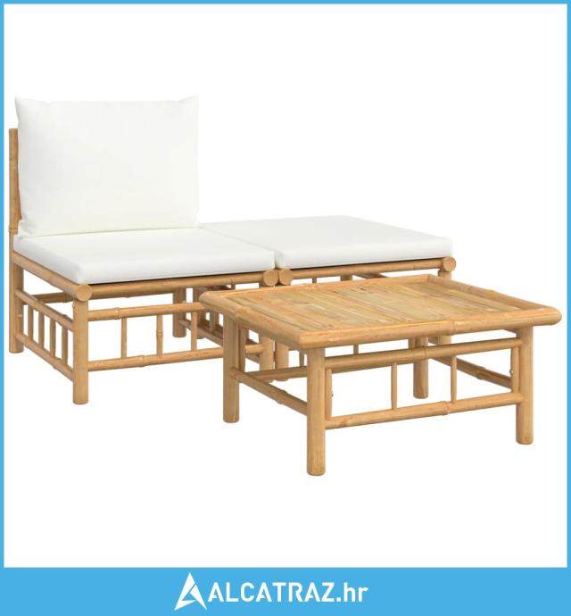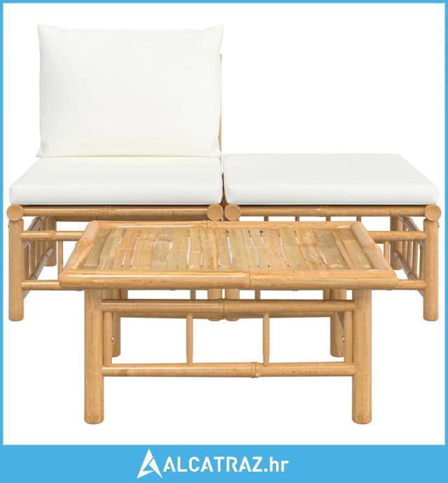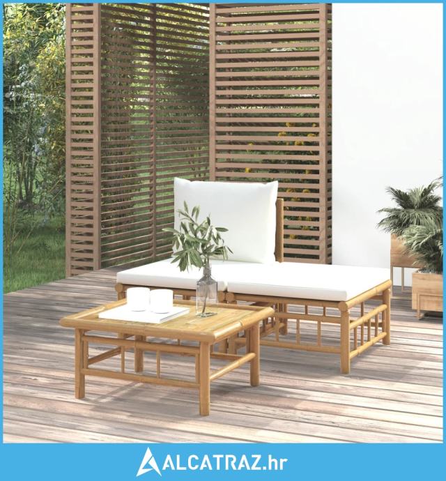 3-dijelna vrtna garnitura od bambusa s krem bijelim jastucima - NOVO