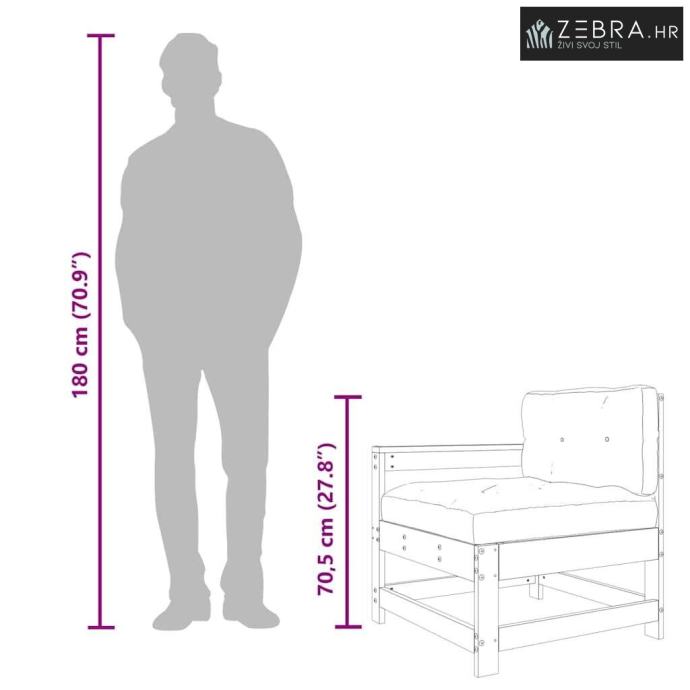 Dimenzije srednje sofe: 62 x 62 x 70,5 cm (D x Š x V)