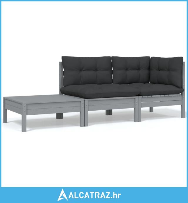 3-dijelna vrtna garnitura s jastucima siva od masivne borovine - NOVO