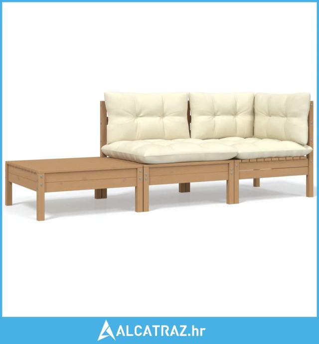 3-dijelna vrtna garnitura s krem jastucima od masivne borovine - NOVO