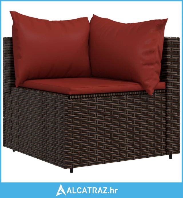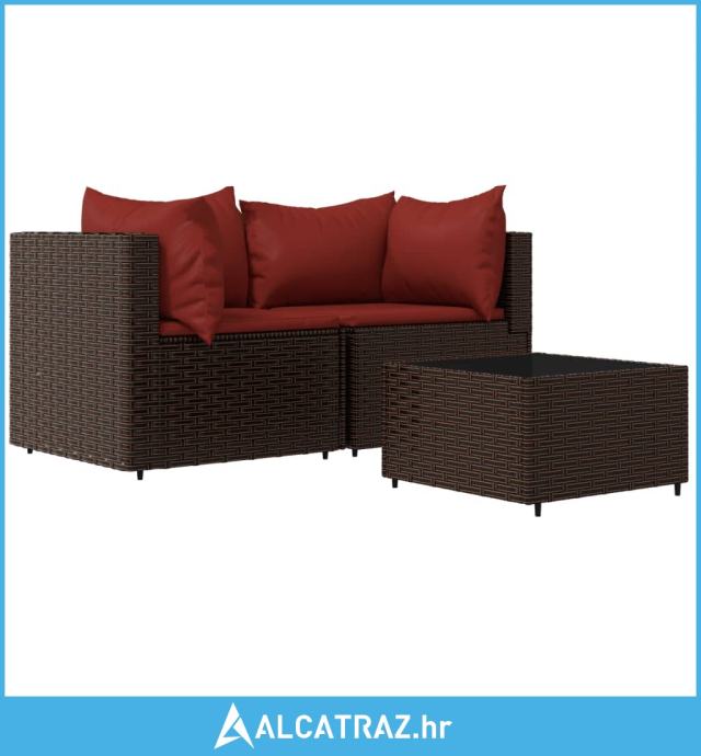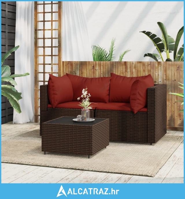 3-dijelna vrtna garnitura od poliratana s jastucima smeđa - NOVO