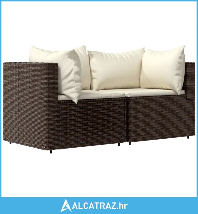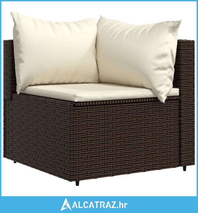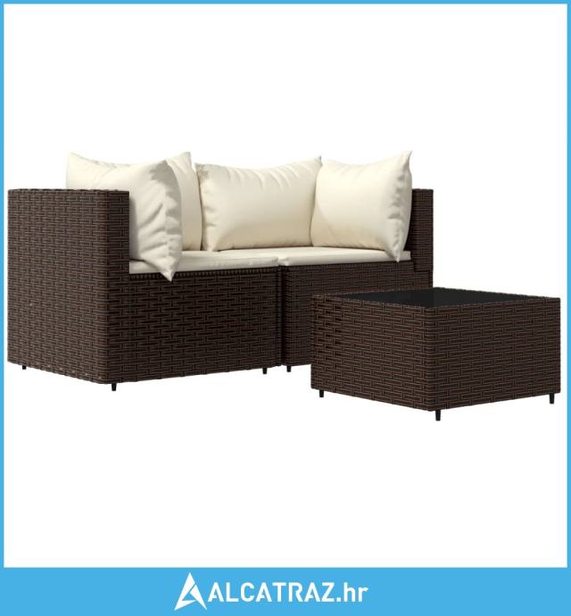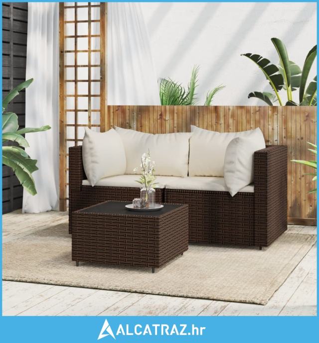 3-dijelna vrtna garnitura od poliratana s jastucima smeđa - NOVO