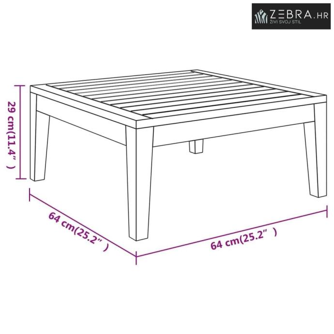 Dimenzije stola: 64 x 64 x 29 cm (D x Š x V)