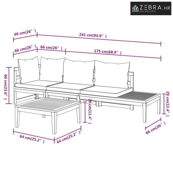 Napomena: Kako biste produžili vijek trajanja svog vanjskog namještaja, preporučujemo vam da ga redovito čistite i ne ostavljate ga nepotrebno na otvorenom bez zaštite.
