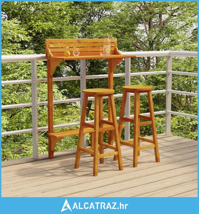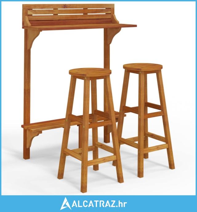 3-dijelni balkonski barski set od masivnog bagremovog drva - NOVO