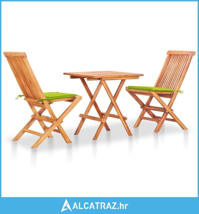 3-dijelni bistro set s jarko zelenim jastucima masivna tikovina - NOVO