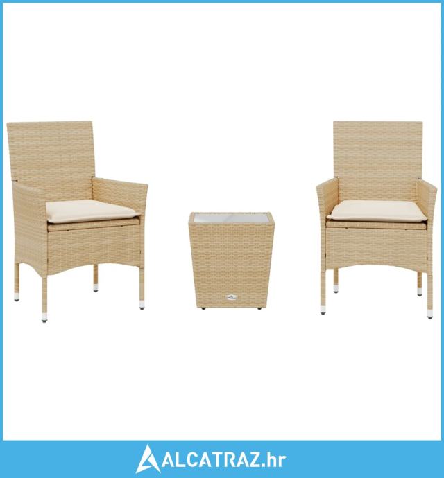 3-dijelni bistro set s jastucima bež od poliratana i stakla - NOVO