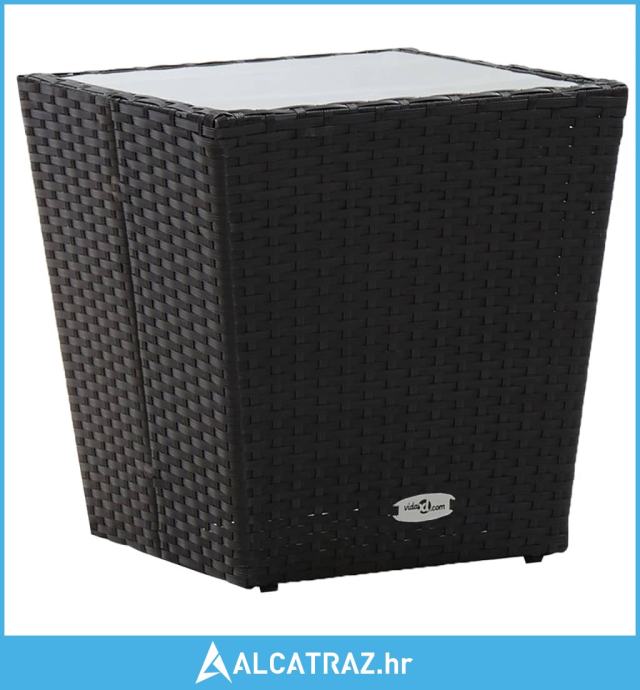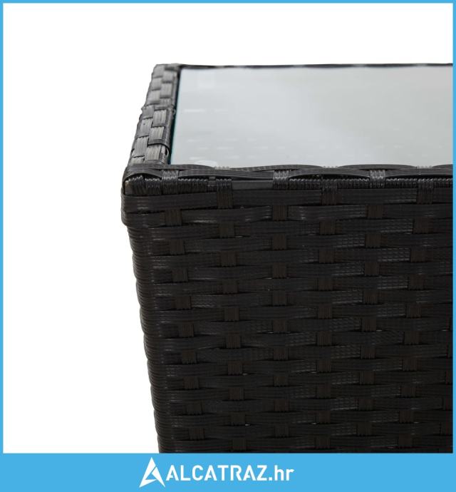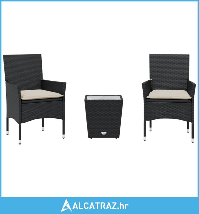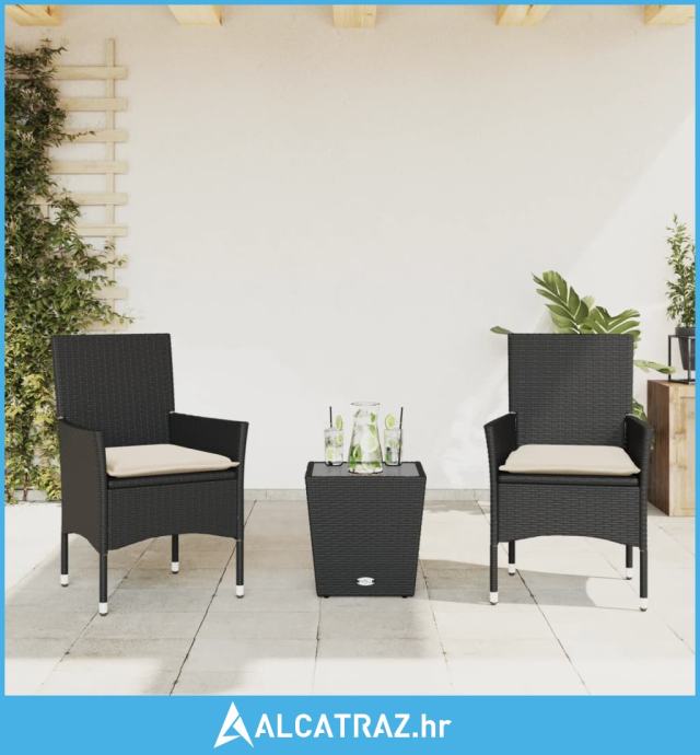 3-dijelni bistro set s jastucima crni od poliratana i stakla - NOVO