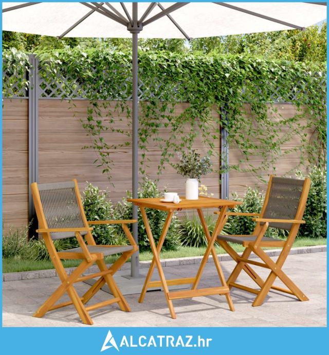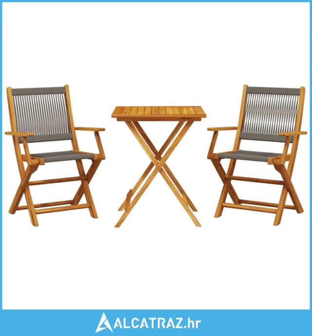 3-dijelni bistro set od polipropilen i masivnog drva sivi - NOVO