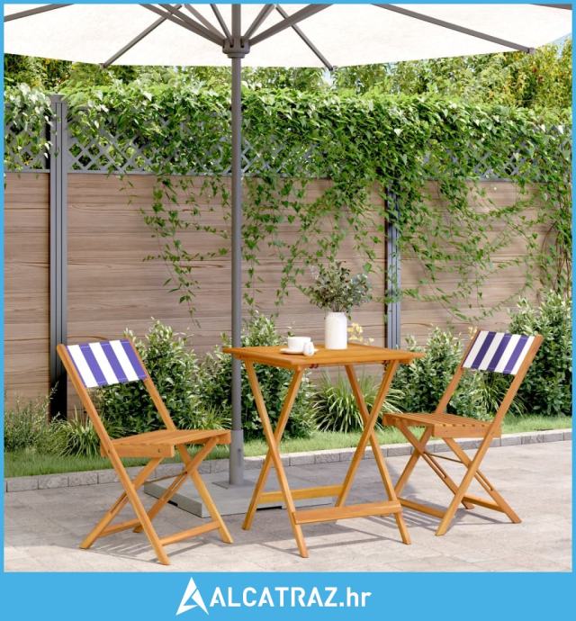 3-dijelni bistro set od tkanine i masivnog drva plava i bijela - NOVO