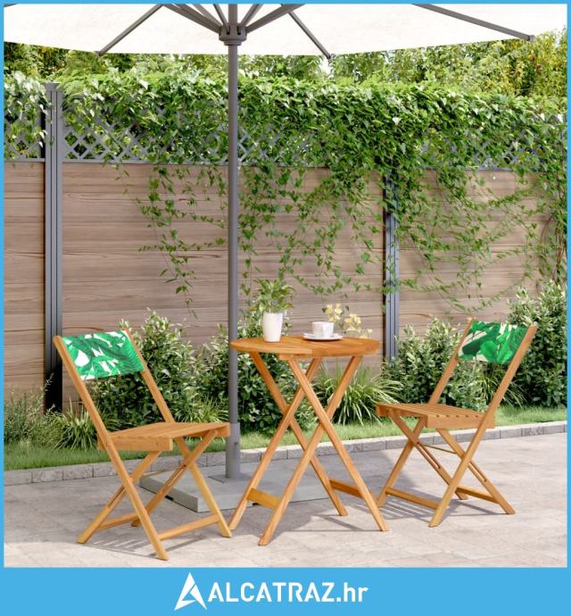3-dijelni bistro set od tkanine i masivnog drva uzorkom lišća - NOVO