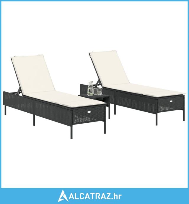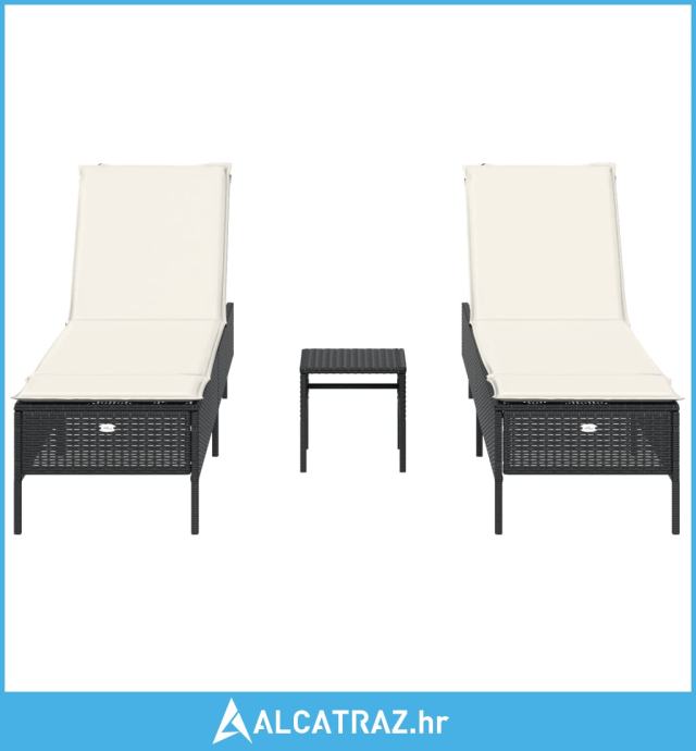 3-dijelni set ležaljke za sunčanje s jastukom poliratan crni - NOVO
