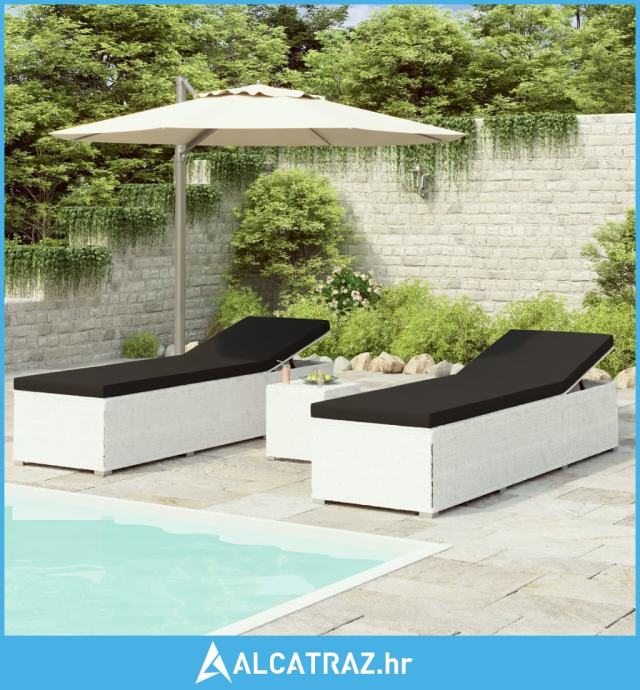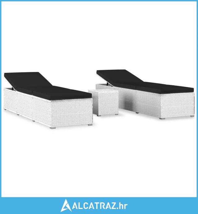 3-dijelni set vrtnih ležaljki sa stolićem od poliratana bijeli - NOVO