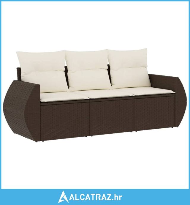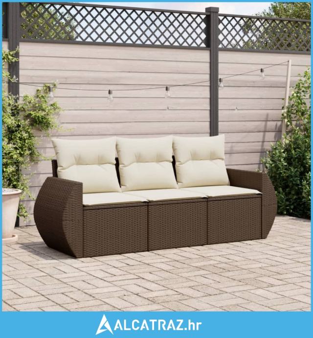 3-dijelni set vrtnih sofa s jastucima smeđi od poliratana - NOVO