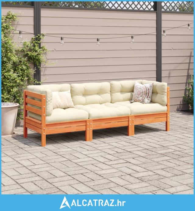 3-dijelni set vrtnih sofa s jastucima voštano smeđi od borovine - NOVO