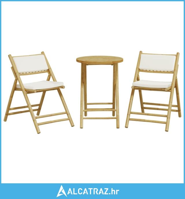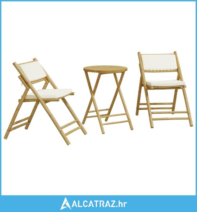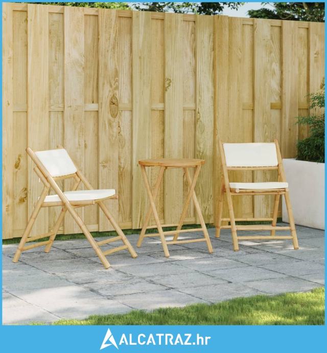 3-dijelni sklopivi bistro set s krem bijelim jastucima bambus - NOVO