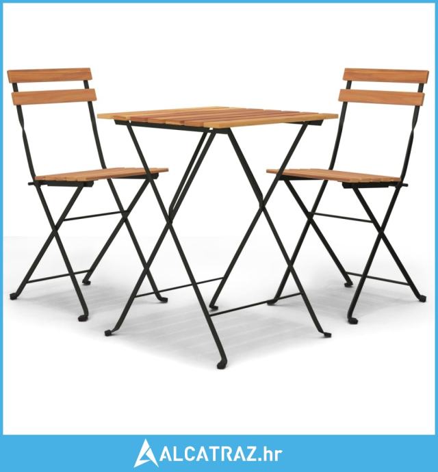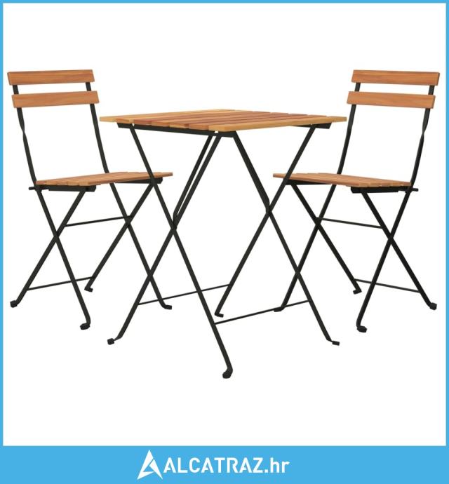 3-dijelni sklopivi bistro set od masivne tikovine i čelika - NOVO
