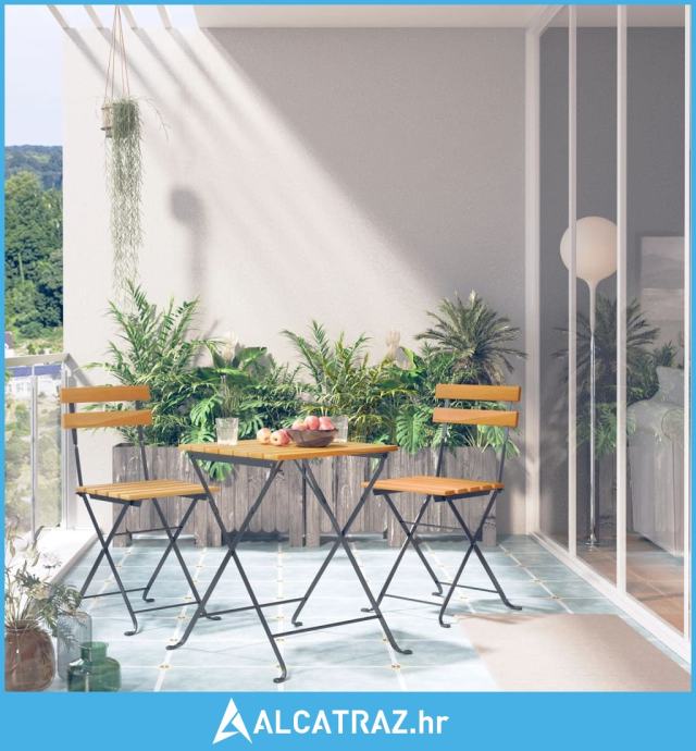 3-dijelni sklopivi bistro set od masivnog bagremovog drva - NOVO