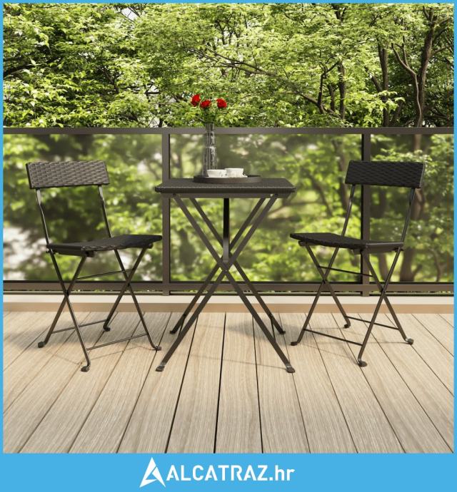 Ovaj 3-dijelni sklopivi bistro set napravljen od poliratana izvrstan je izbor za objedovanje ili opuštanje u vašem vrtu, na balkonu ili terasi.