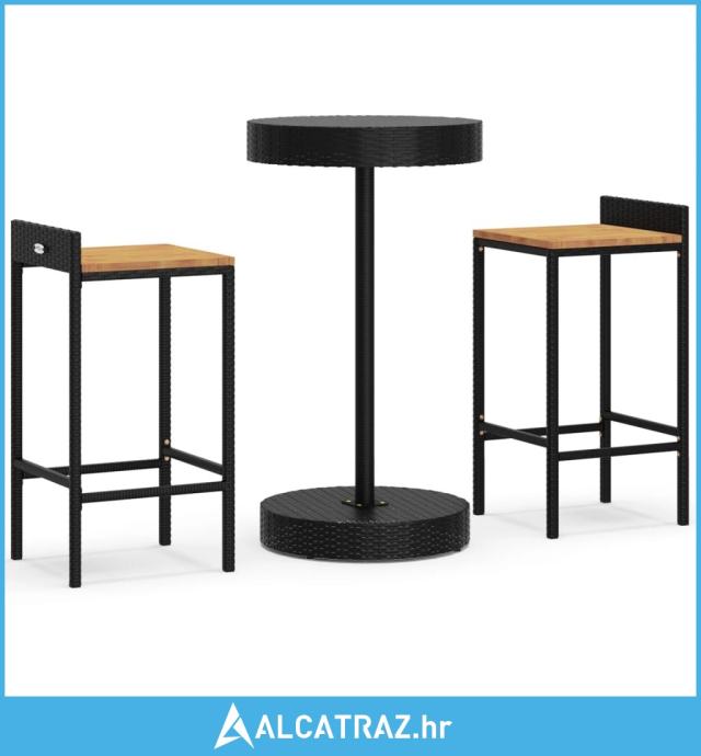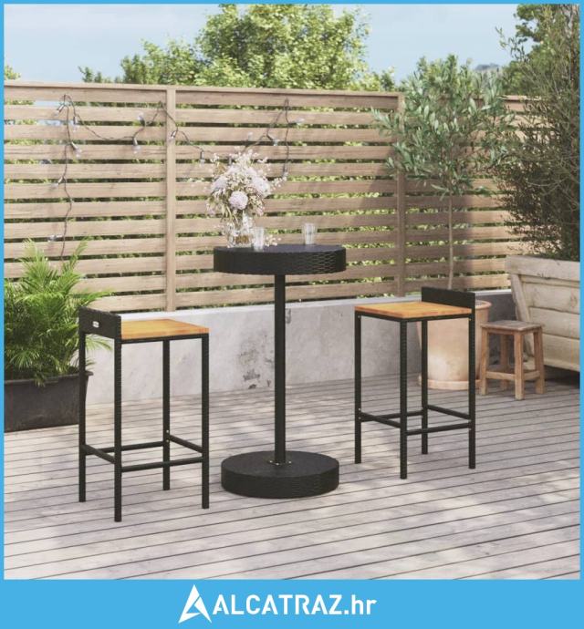 3-dijelni vrtni barski set crni od poliratana i drva bagrema - NOVO