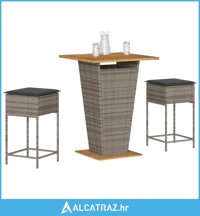3-dijelni vrtni barski set od poliratana s jastucima sivi - NOVO