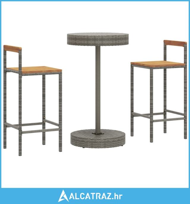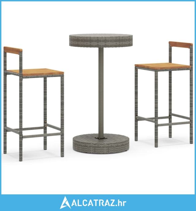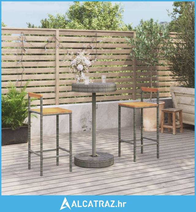 3-dijelni vrtni barski set sivi od poliratana i drva bagrema - NOVO