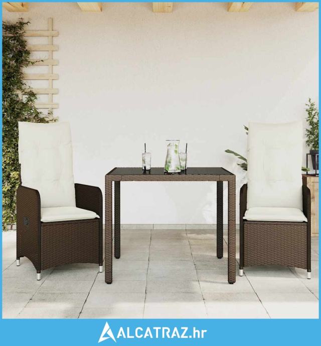 3-dijelni vrtni bistro set od poliratana s jastucima smeđi - NOVO
