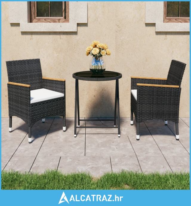 3-dijelni vrtni bistro set od poliratana i kaljenog stakla crni - NOVO