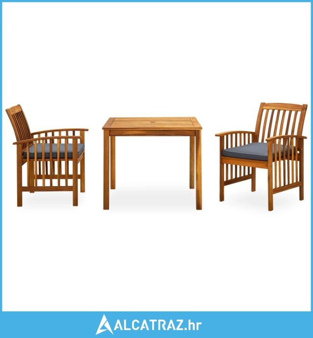3-dijelni vrtni blagovaonski set od drva bagrema s jastucima - NOVO