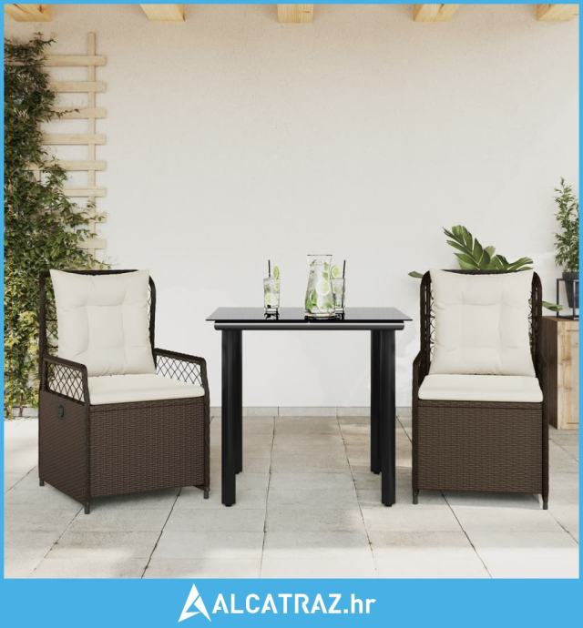 3-dijelni vrtni blagovaonski set s jastucima poliratan smeđi - NOVO