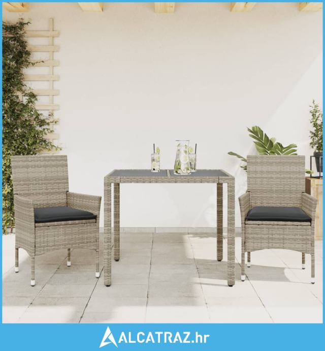 3-dijelni vrtni blagovaonski set s jastucima poliratan i staklo - NOVO